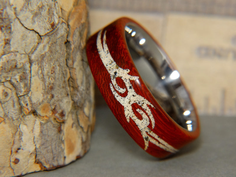 Very nice antler ring with glow in the dark inlays. Third purchase from this store, quality rings.