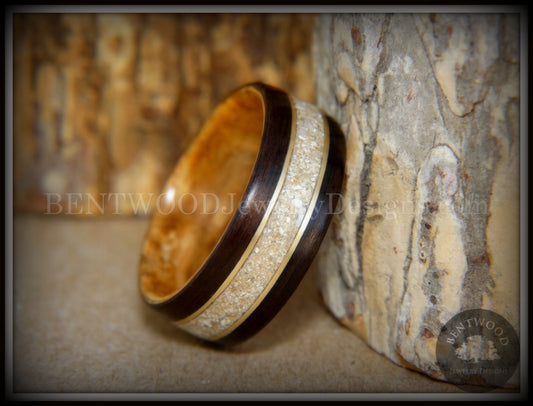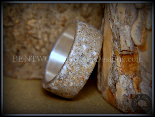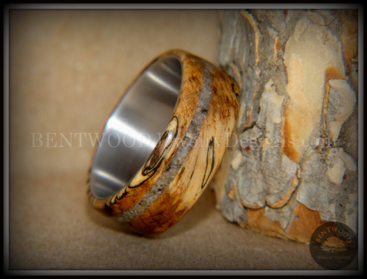 Bentwood Ring - "Spalted" Live Oak Beach Sand Inlay Stainless Steel Core