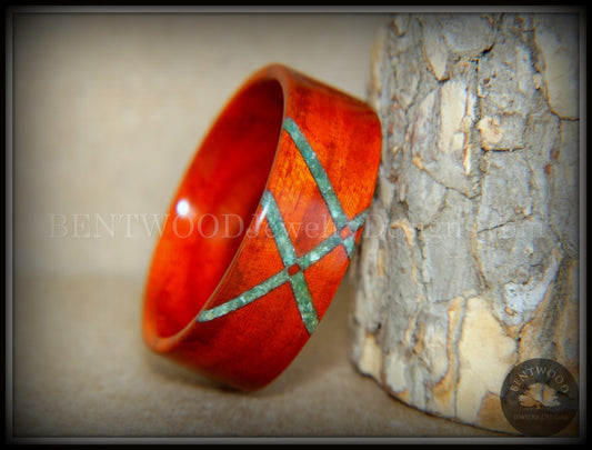 Bentwood Ring - "Routes" African Padauk Wood Ring with Verdite Inlay