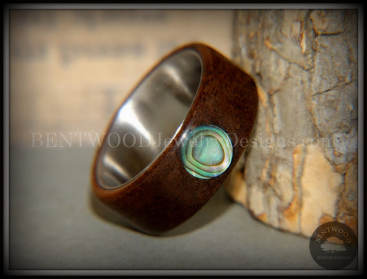 Bentwood Ring - "Sea Opal" Walnut with Abalone Paua Shell Inlay on Comfort Fit Surgical Steel Core