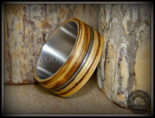 Bentwood Ring - "Striped Rocker" Zebrawood Ring with Silver Electric Guitar String Inlay on Comfort Fit Titanium Steel Core