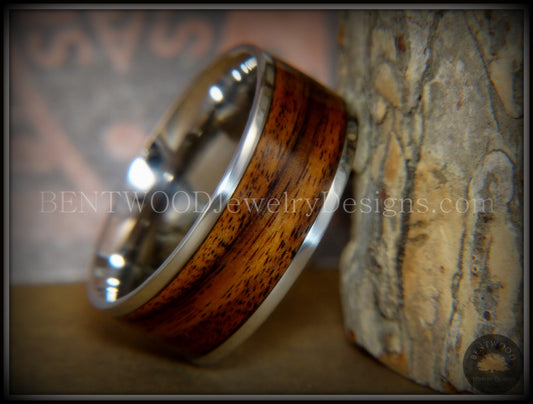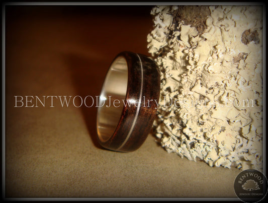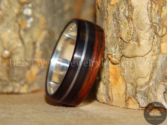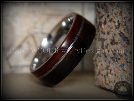 Bentwood Ring - Kingwood Wood Ring with Heavy Gauge Silver Electric Guitar String Inlay on Surgical Steel Core
