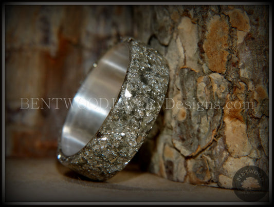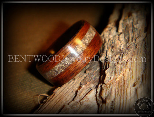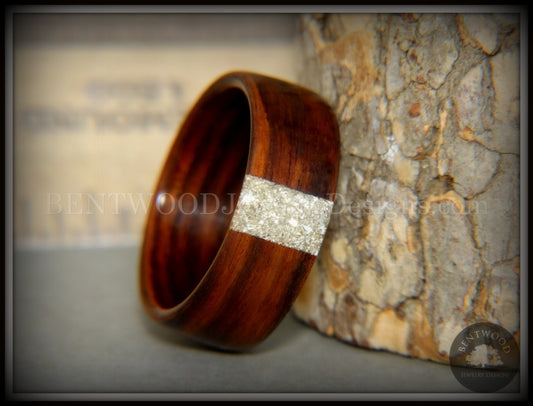Bentwood Ring - Kingwood Wooden Ring with Wide Crushed Silver Glass Inlay