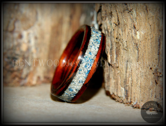 Bentwood Ring - Kingwood Wooden Ring with Bentwood Kingwood Wood Rings with Silver/Blue Glass Inlay