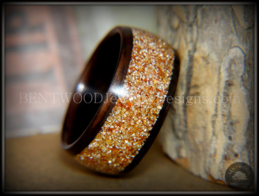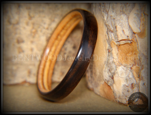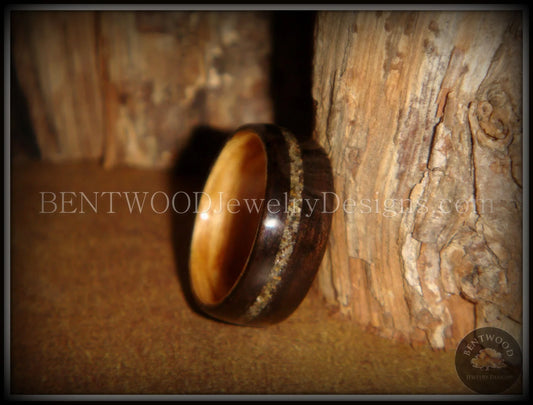 Bentwood Ring - Macassar Ebony Olive Wood Liner and Offset Canadian Beach Sand Inlay