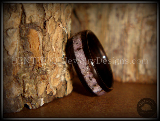 Bentwood Ring - Macassar Ebony Wood Ring and Charoite Stone Inlay