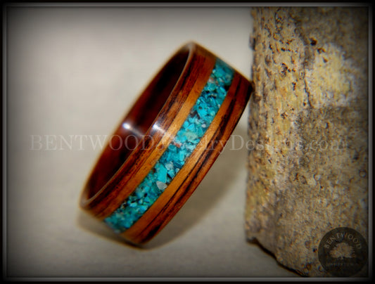 Bentwood Ring - Kingwood, Koa Wood and Chrysocolla Inlay